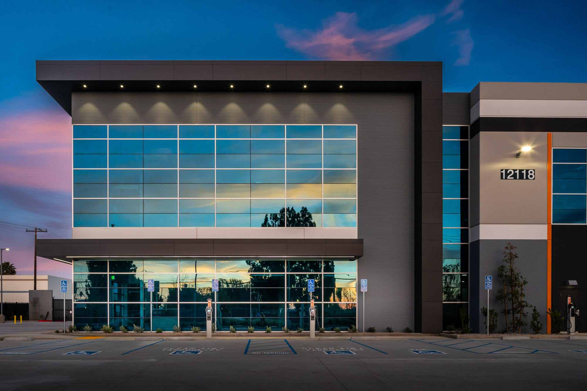 A high-demand infill warehouse documented for leasing and investor communications. Twilight exteriors emphasize curb appeal and tenant readiness; interiors highlight LED upgrades, epoxied flooring, and modernized power systems.